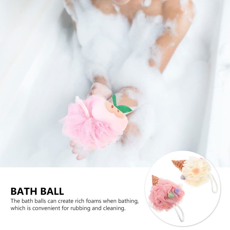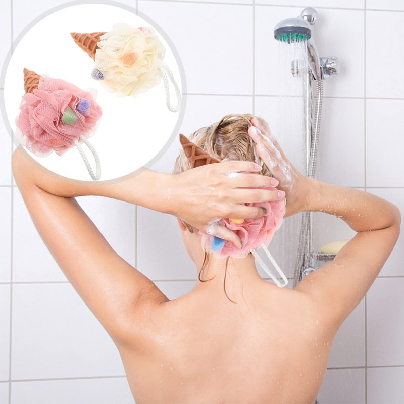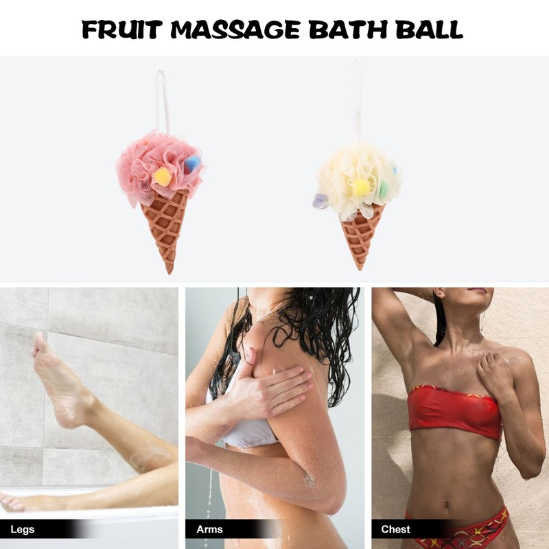2Pcs Ice Cream Bath Shower Loofah Sponge Mesh Pouf Shower Ball Exfoliating Shower Sponge Loofa Loufa Puff Scrubber for Men Women Bathroom