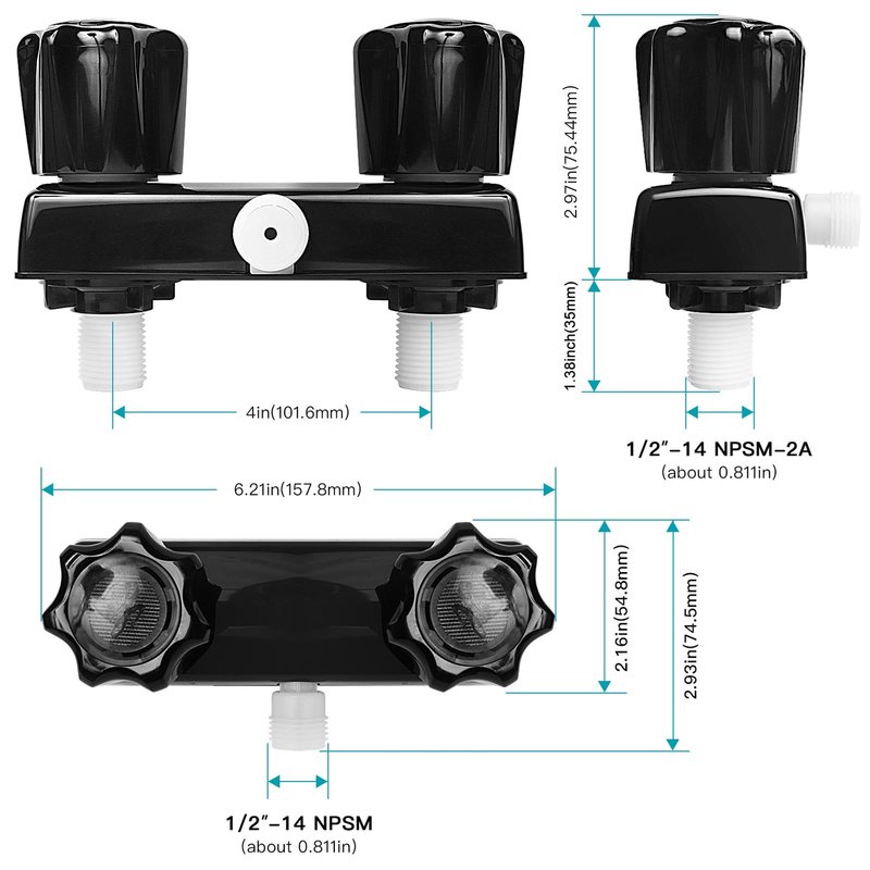 - Indoor&Outdoor RV Shower Faucet: A perfect replacement for inside and outside shower of your rv camper to take a shower or fill up dishs. UPC and CUPC Certified faucet for 4" center to center installation.