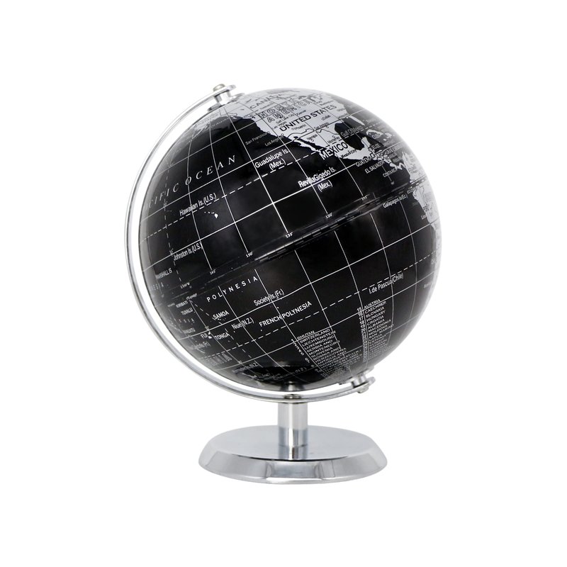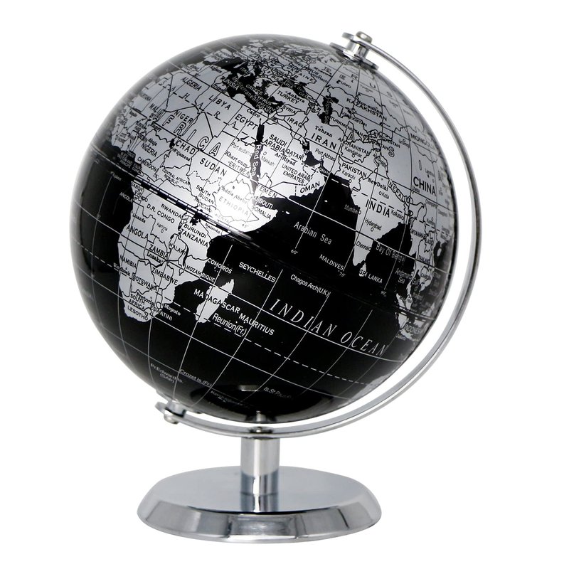 Exerz World Globe Black Dia 5.5-inch - Mini Educational Globe of Earth - Metal Base - Metallic Black