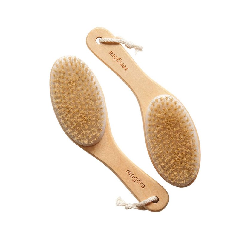 Experience the ultimate rejuvenation with rengöra's dry brushing body brush, your new secret weapon for achieving a flawless, glowing skin. Made with 100% natural boar bristles and high-quality, sustainably sourced cherry wood, this body brush is designed to be used for both wet and dry brushing, making it a versatile addition to your skincare regimen. Get ready to feel the invigorating sensation of the brush stimulating your lymphatic system, promoting detoxification and improving your overall health.
