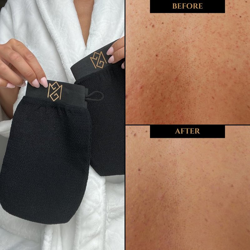 - BENEFITS: Removes dead skin build up & impurities, reduces ingrown hairs and helps clear pores. Our Exfoliating mitt helps a healthy younger skin layer underneath peeling the dead skin layer and provides a better product absorption. It promotes blood circulation and leaves your skin silky and rejuvenated. Ideal as a pre-tanning routine to prepare skin for a lasting golden tan.
