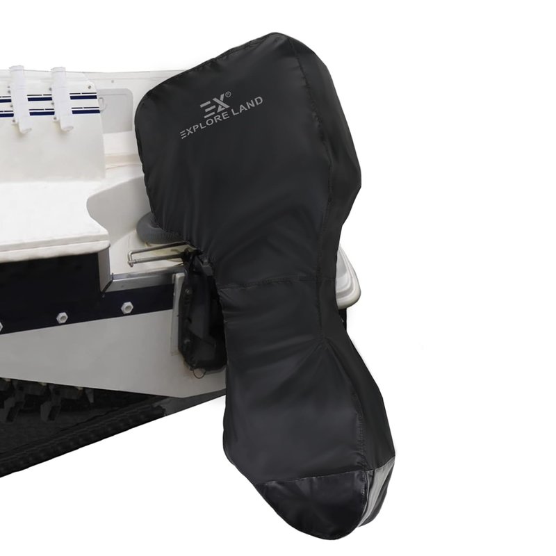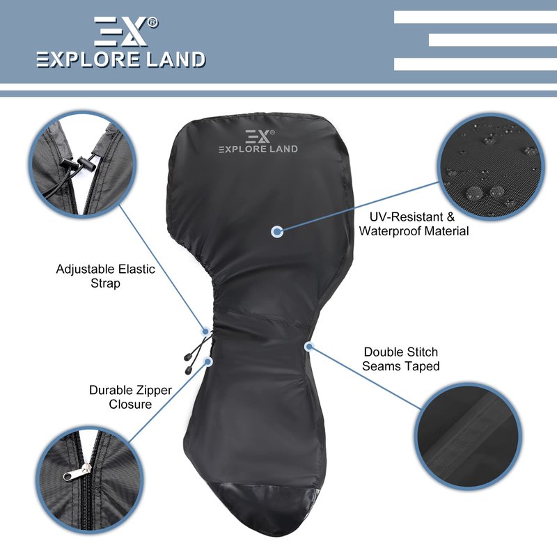 Explore Land UV-Resistant Full Outboard Motor Cover - Waterproof 600D Heavy Duty Boat Engine Covers Fit for Motor 150-250 HP, Black