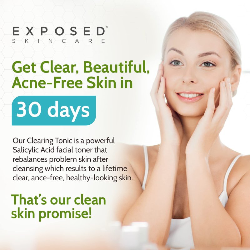 Taking care of your skin can sometimes feel like a chore, but with our Clarifying Facial Toner, it's easy to achieve a clearer, more radiant complexion that you'll love showing off!Why Choose Our Exposed Skin Care Clarifying Toner?– It balances your skin to reduce excess oil production that can clog pores and cause acne.– It soothes and calms irritated skin, and reduces redness to prevent future breakouts.– It prepares your skin for other acne treatments, such as serums or creams, to enhance their absorption and effectiveness.– It hydrates the skin, preventing dryness and flakiness that can worsen acne.– It's a pore-minimizing toner that leaves your skin feeling smooth, soft, and glowing.How to Use?Our acne control toner is simple to use. Gently apply a small amount to the affected area using your bare hands. Make sure to avoid contact with your eyes. With its gentle formula, you can use it twice a day without worrying about drying out your skin or causing irritation.Don't let blemishes and uneven skin texture hold you back from feeling confident and beautiful. If you're ready to take the next step towards clearer, smoother skin, try our cystic acne treatment toner!