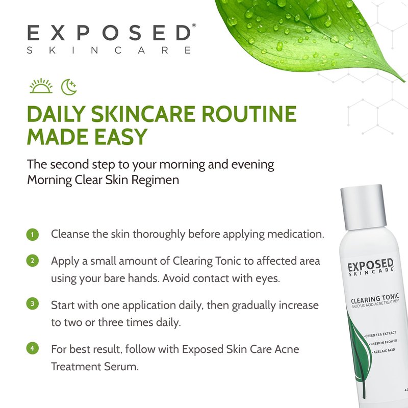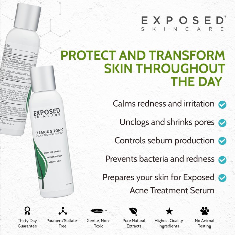 Exposed Skin Care Clearing Tonic Facial Toner with 1% Salicylic Acid and Witch Hazel for Acne Treatment – Pore Minimizing Toner to Prevent Breakouts, Reduce Redness and Balance Skin – Step 2 (4 fl oz)