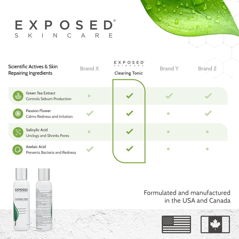 - Prep Skin for Acne Treatment – As a part of our multi-step acne treatment kit, this hydrating toner has Witch Hazel and Passion Flower that calms redness and irritation to get your skin ready for the next step of the routine – to allow the Exposed Skin Care Acne Treatment Serum to penetrate deeply into your skin for clearer, healthier skin.