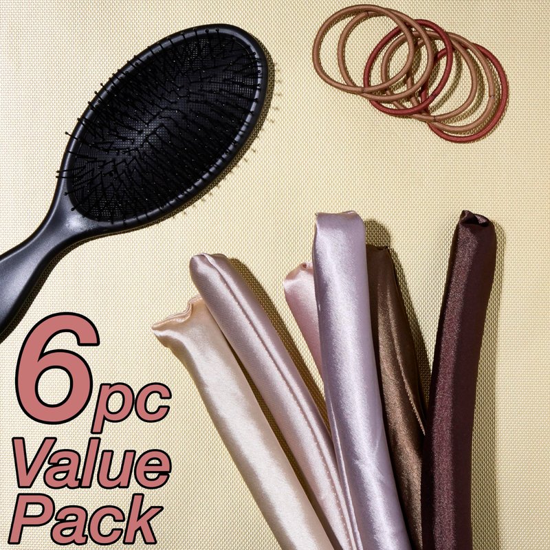 Expressions 6pc Satin Curling Rods - Super Soft Satin Hair Accessories for Women - Flexible Hair Curlers For Everyday Hairstyling, Curly Hair Products for Natural Hair, Waves, Spiral Curls & Lift