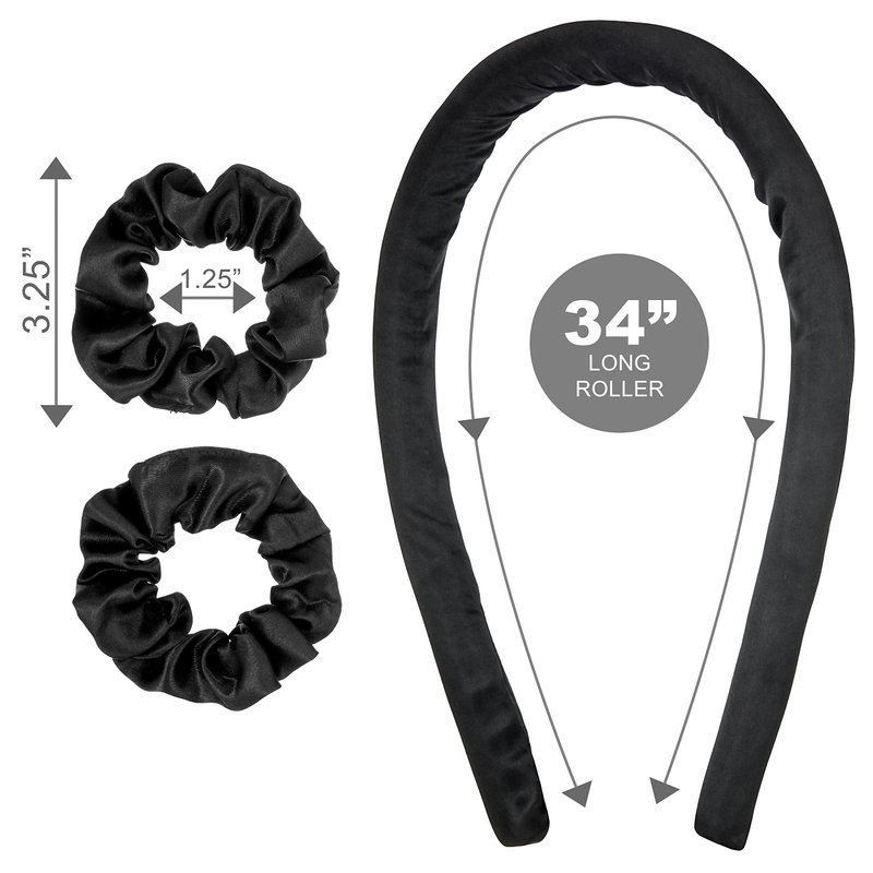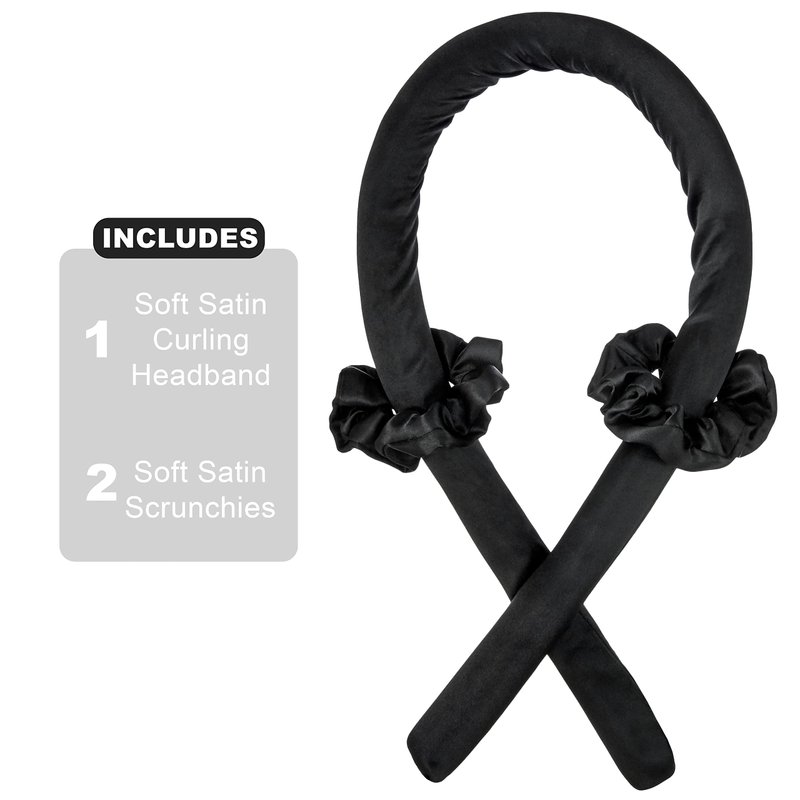 - Curly Hair Accessories - This pack of heatless curl hair tools includes a 34'' soft curling headband and 2 scrunchies in a classic black color way
