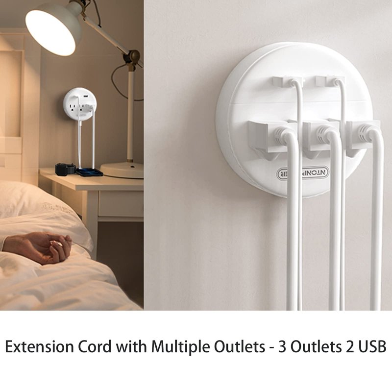 Extension Cord 25ft, NTONPOWER Power Strip with Long Extension Cord, 3 Outlet 2 USB Compact Desktop Charging Station Wall Mount for TV Living Room, Dorm, Office and Nightstand - White