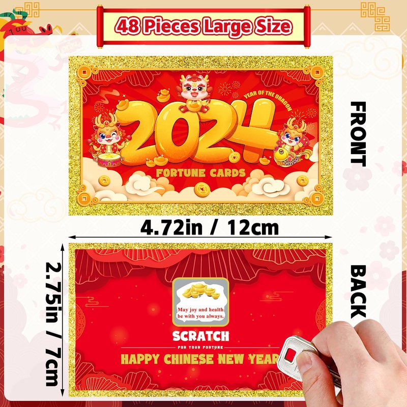 Extenuating Threads 48PCS 2024 Chinese New Year Scratch Off Fortune Cards, 2024 Year of The Dragon Party Fortune Games, Favors for Lunar Dragon New Year's Celebration Office Party Supplies