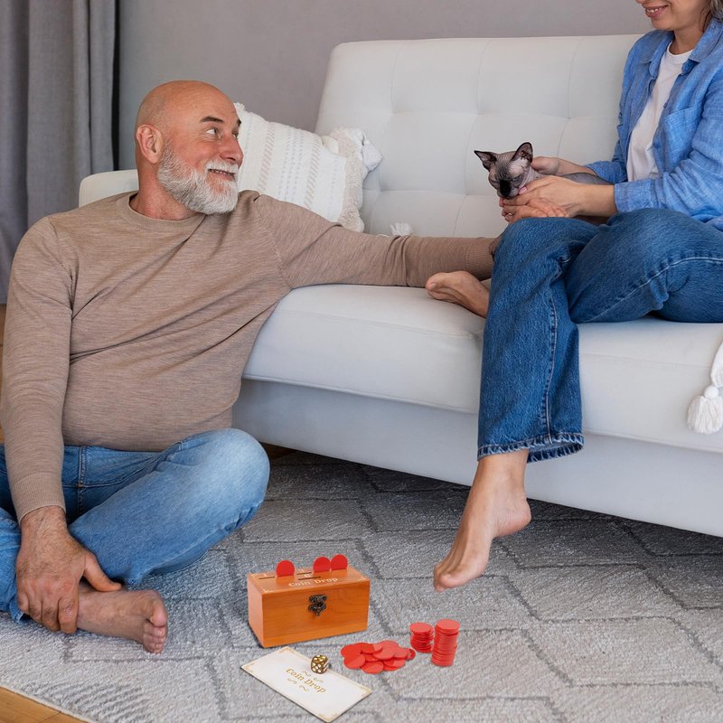 Extguds Wooden Penny Game,Coin Drop Game,Penny Coin Game Contains 50 Coins,Wooden Game Box and 1 Dice,a Fun Board Game to Interact with Family and Friends