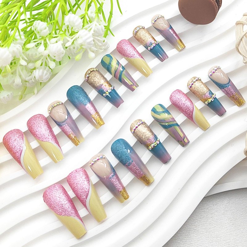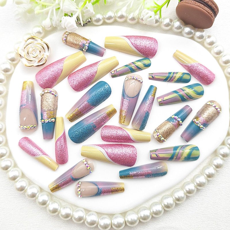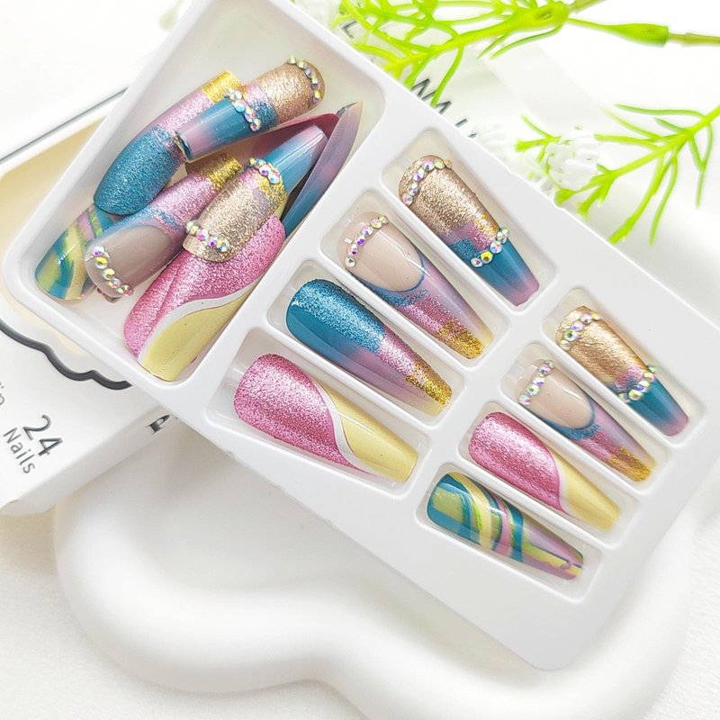 - LASTING EFFECT: You can use the nail adhesive stickers we provide for you (with nail adhesive stickers, artificial nails can be reused). However, the effect of nail glue stickers is not as good as liquid nail glue. If you want your fake nails to last longer, you can use liquid nail glue, the effect lasts for 1-2 weeks.