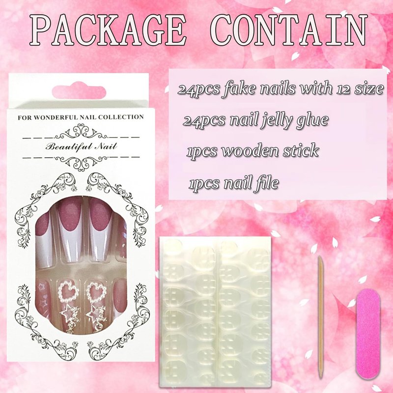 - 【False Nails Sets】You'll get 24 extra long coffin false nails in 12 sizes. 1 mini nail file, 1 small wooden stick, 1 piece of press on nails adhesive sticky tabs.
