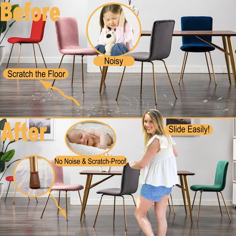 - 【Silicone Furniture & Floor Protectors】Newly designed taller thicker silicone chair leg floor protectors as a new partner of chair legs, nice snug fit, These chair leg caps protectors can effectively protect hardwood floors, smooth sliding, no scratches and no more screeching noises.Your floors will thanking you.