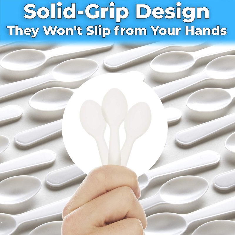 Serving individual samples can leave a big cleaning job. Unless you use a bulk supply of our low-cost, plastic-tasting spoons. Give your guests endless servings of tiny treats and then dispose of these spoons with the rest of the trash.