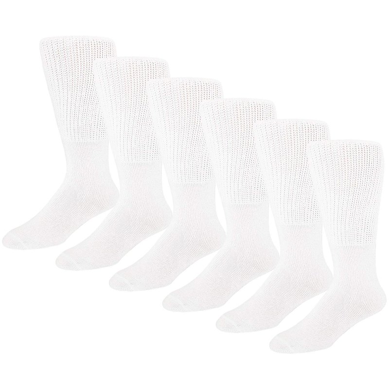 Extra Wide Diabetic Cotton Socks, Mens Medical Swollen Feet Mid/Over the Calf Socks (Extra Wide - White) - 6 pairs