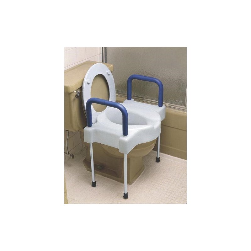 300 Lb. Capacity * Features an aluminum frame * Features contoured soft foam arm rests designed to assist the user in sitting down or rising from the seat * Ideal for people who need extra assistance because of significant lower extremity weakness or poor balance * Legs are height-adjustable * Adds 4 (10 cm) to the bowl height and eliminates the need for a commode or added toilet seat frame * Width is 22 1/2 (57 cm) * Length is 16 (41 cm) * Opening measures 10 x8 * Fits both standard and elongated toilet seats *.