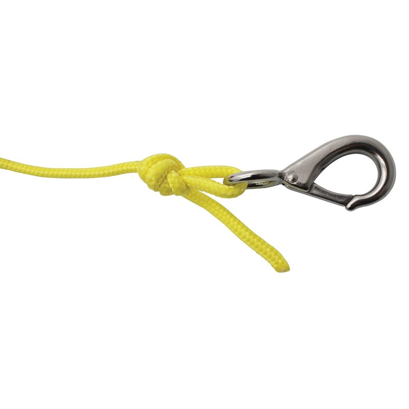- Rope: 15' hollow braid polyethylene rope with plated steel snap hook
