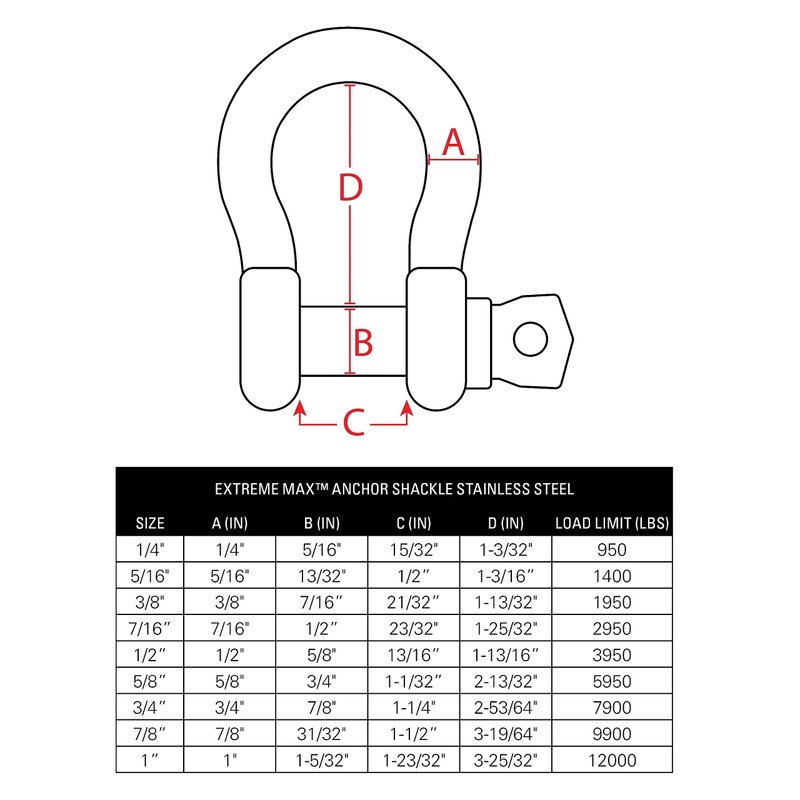 - Shackle Size: 1/2"