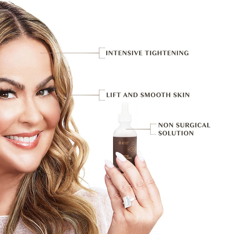 - The Extreme Tightening Serum by Ashley Black contains the maximum amount of skin-tightening botanicals in one simple formula. The serum works in two ways: first, it has an instant tightening effect that lasts up to 6 hours and leaves no residue. You can wear it daily under or over makeup and on any body part. The second effect is long-term skin tightening. It is best when used with the FasciaBlaster Method for Face and Body.