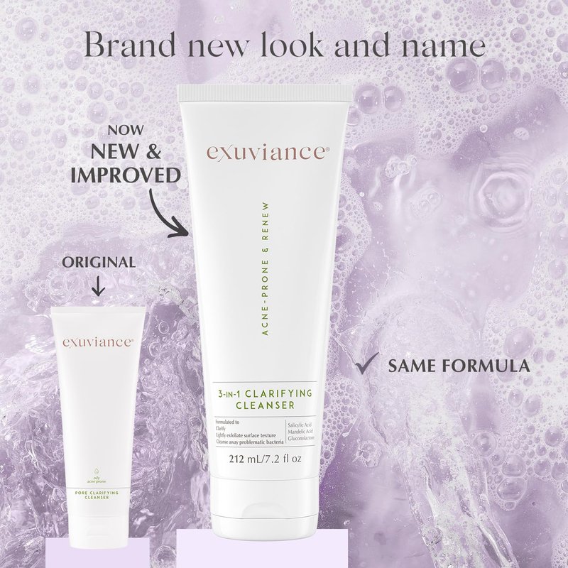 EXUVIANCE 3-in-1 Clarifying Anti-Aging Cleanser for Acne-Prone Skin with Salicylic Acid, Soap-Free Makeup Remover and Oil Control Face Wash, Exfoliates, Soothes & Improves Skin Texture, 7.2 fl. oz