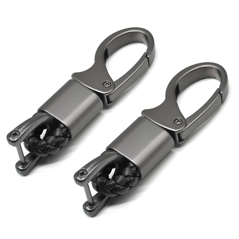 Performance: The rope is genuine leather weave, handy and with good texture. The metal part is made of zinc alloy polished, smooth surface, scratch-proof, rust-proof, durable Fix the key fob on the pants to prevent the keys from being lost. Exquisite workmanship, sturdy and elegant. A braided leather and metal keychain and detachable with 1pcs D ring. You can DIY, easily attach it to any other keys and better organize the keys. Package Included: 2 x Key Chain, Black Color 1 x Screwdriver