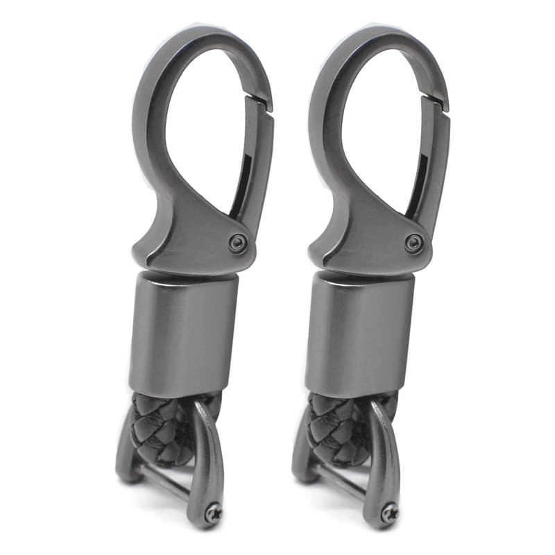 EYANBIS Car Key Fob Keychains Leather Holder Key Chain Sturdy Metal with D-Ring for Men and Women 2 Pack, Black, 360 Degree Rotatable, with Screwdriver