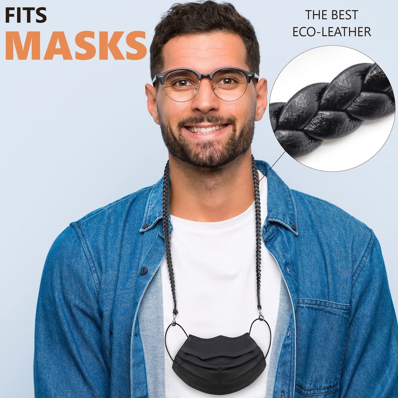 - 100% Non-Slip Tips - Our eyeglass strap for glasses comes with silicone loops and metallic clasps. Adjustable silicone loops of eyeglass holder necklace are reinforced by metallic spirals for extra grip. Eyeglass string can also be used as mask holder due to metallic clasps