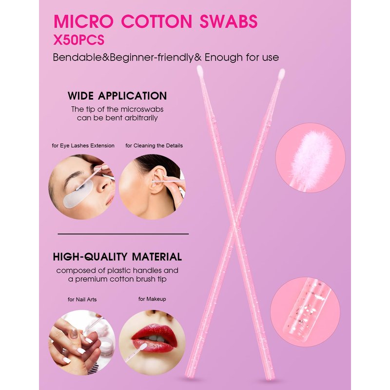 - BENDABLE MICRO SWABS: 50pcs micro applicator brushes be bent to any angle, they can be used not only for eyelash extensions but also for makeup and cleaning details.
