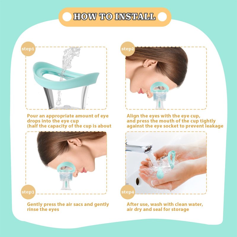 - 【Quick Cleaning】The eye wash cup is quick and convenient for cleaning the eyes. Pour distilled water or clean saline water, press the air bag with appropriate force by hand, and let the liquid clean the eyes. The rinse kit can be used with eye wash liquid or eye drops, suitable for people of all ages, making eye cleaning quick and safe. Children should not use it alone.