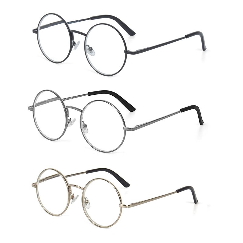 EYE ZOOM 3 pack round shaped metal frame reading glasses for man and women. Round metal frame with spring hinged temples for more comfortable wearing. Retro circle frame readers that make you unique. Oversized scratch-free lenses for a better visual experience. Whether you are looking for reading glasses for the office or home. EYEZOOM reading glasses will give you the premium protection. Strength available: +1.00 / +1.25 / +1.5 / +1.75 / +2.0 / +2.25 / +2.5 / +2.75 / +3.0 /+3.5 Color available: Black / Gunmetal / Silver / Gold Product includes the 3 pairs of EYE ZOOM reading glasses & 1 pair of soft pouch & 1 pair of clean cloth &1 pair of eyeglasses strap. Care: Please do not use finger or rough cloth to wipe and clean the lens as it may either stain or scratch the lens and reduce the performance of the lens, please use the soft cleaning cloth to gently wipe away dust.