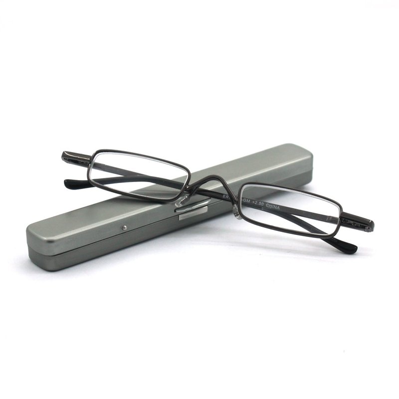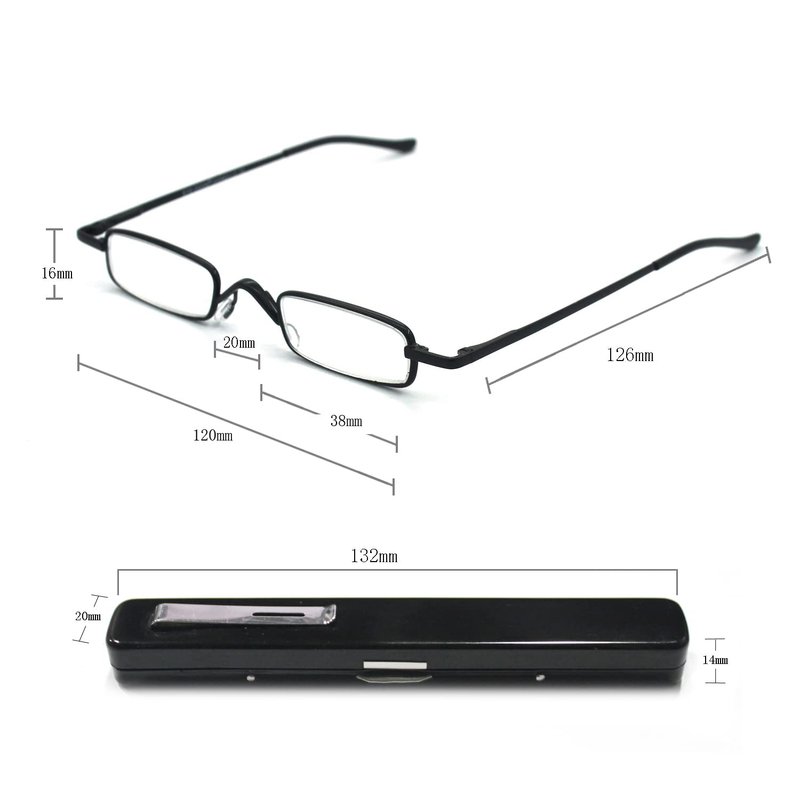 EYE ZOOM mini design ultra-light reading glasses with portable clip aluminum case. Super lightweight portable aluminum case and high-quality metal frame readers, easy to carry and use. Clear and scratch-free acrylic lenses give you a better visual experience. Whether you are looking for reading glasses for office or home. EYEZOOM reading glasses will give you the premium protection. They are also perfect gifts to your parents and the elderly. Strength available: +1.25 / +1.5 / +1.75 / +2.0 / +2.5 / +3.0 /+3.5 Color available: Black and Gunmetal Product includes the EYE ZOOM Reading Glasses & mini aluminum case. Care: Please do not use finger or rough cloth to wipe and clean the lens as it may either stain or scratch the lens and reduce the performance of the lens, please use the soft cleaning cloth to gently wipe away dust.
