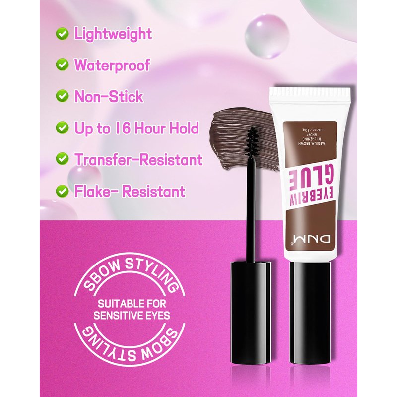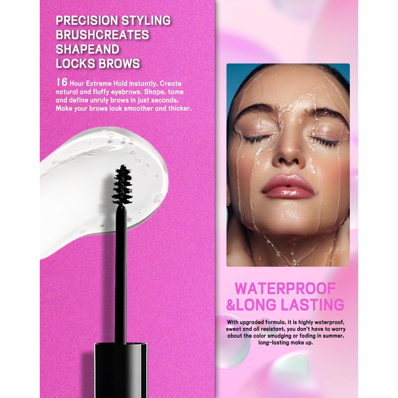 - Transparent Eye Brow Glue - This non sticky and transparent Eyebrow Setting Gel is great for wearing as a base under tinted brow gel or eyebrow pencils, and creates a healthy, defined look. Our clear brow gel with up to 16 hours of extreme hold is transfer-proof, quick-drying with a natural finish, allowing you to style brow hairs and hold them in place for limitless looks.