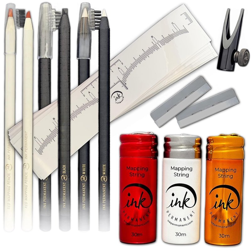 - [A Must for a Brow Artist] — Our eyebrow mapping kit consists of the most necessary tools: eyebrow thread in 3 different colors, black eyebrow pencil, white microblading pencil for eyebrows, red eyebrow pencil, 10 eyebrow ruler for microblading, and the eyebrow pencil cosmetic pencil sharpener; they are used to create the perfect sketch.