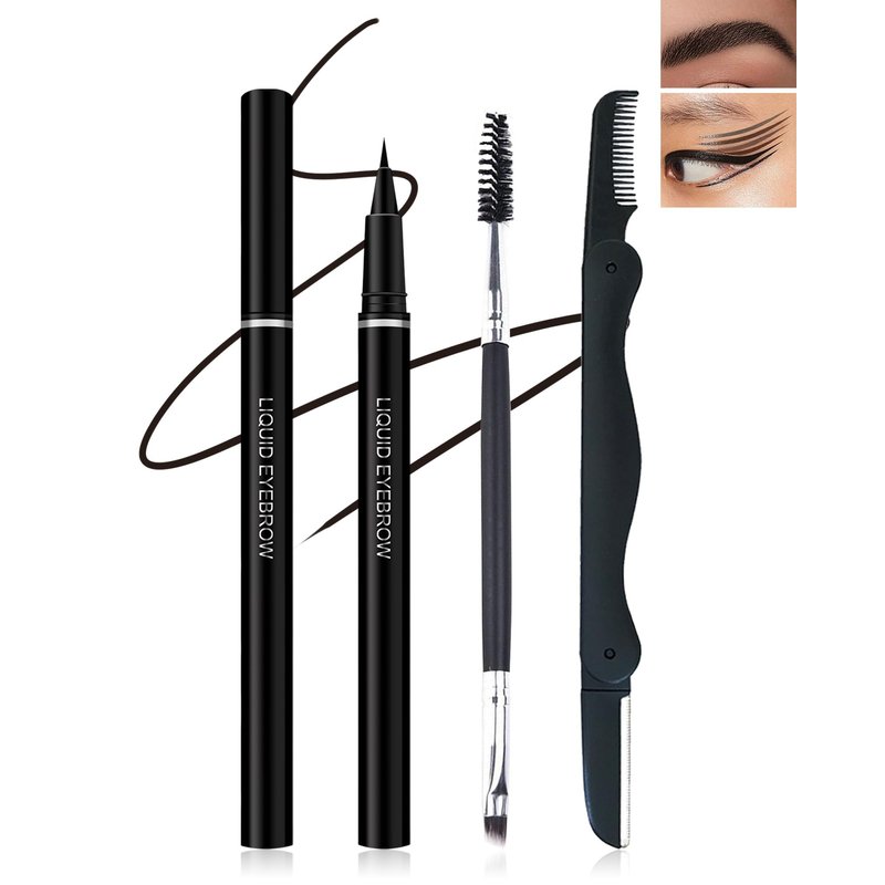 - ULTRA FINE LIQUID EYEBROW & EYELINER PENCIL - You will get 1Pcs waterproof eyebrow/eyeliner pen, 1Pcs folding eyebrow razor and 1Pcs eyebrow brush. The high-pigmented, smudge-proof, waterproof and multi-use eyebrow/eyeliner pencil includes a rich liquid felt applicator for smooth, fast, and accurate eye makeup looking.