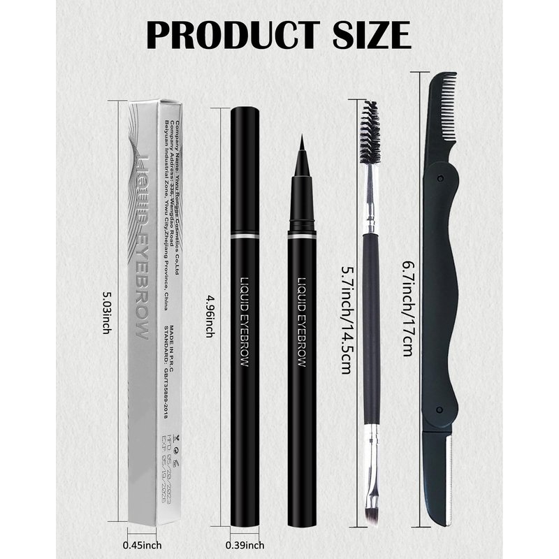 Eyebrow Pencil Black, Brow Pencil with Ultra-Fine 0.01mm Brush-Tip, Multifunctional Liquid Eyeliner & Eyebrow Pen, Waterproof Sweat-Proof Long-lasting Quick Drying Smooth, with Brow Razor & Brush-05#