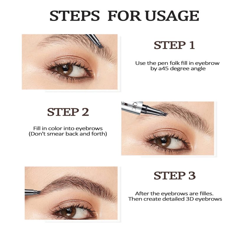 - EASY TO USE & VERSATILE - The unique 4 point fork tip applicator draws the outline of your eyebrows and continues to shade evenly along the shape to create vivid, natural looking brows, saving you time. The Waterproof eyebrow pencil draws eyebrows similar to 3D natural real hair. You can also use it to fill in hairlines, eyelashes and whiskers.