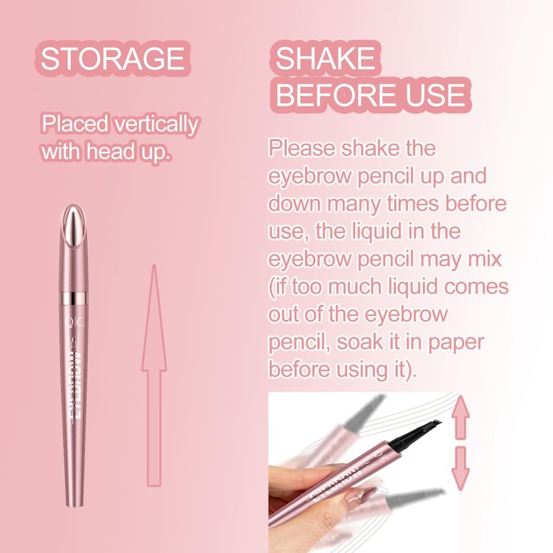 Please shake the eyebrow pencil up and down many times before use, the liquid in the eyebrow pencil may mix (if too much liquid comes out of the eyebrow pencil, soak it in paper before using it).