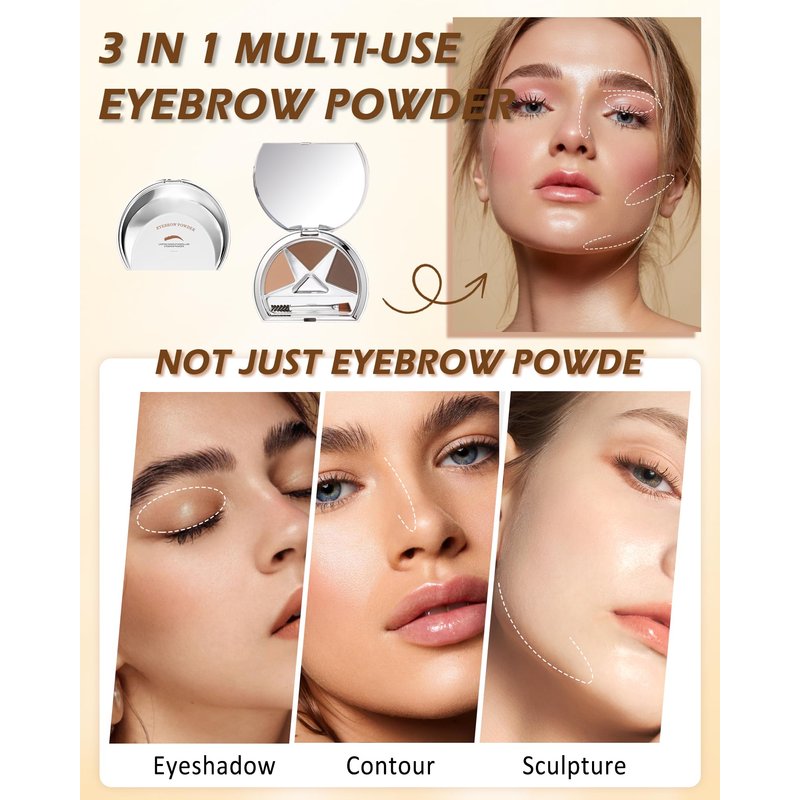 The Three-Color Eyebrow Powder Palette is Fine and Natural, with Super-Saturated Color Development, Presenting Natural Colors, This 3-In-1 Kit has Everything You Need in a Day and even More, This Travel-Friendly Kit is Perfect for Women on the go to Create the Perfect Brow-Shaped Eye Makeup