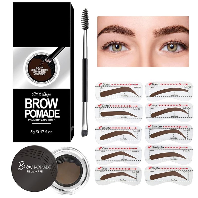 Eyebrow Stamp Stencil Kit Eyebrow Pomade Waterproof Eye Brow Stamping Kit Brow Stamp Trio Kit 10 Eyebrow Stencils With Dual Ended Brow Brush Perfect Natural Brow Pomade Brow Eyebrow Kit Taupe