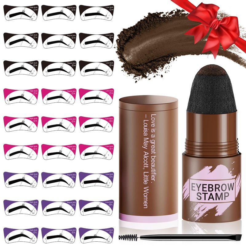 Eyebrow Stamp Stencil Kit - Eyebrow Powder, Makeup for Natural-Looking Brows, Eyebrow Stamp Kit with 27 Reusable Stencils, Easy to Use, Waterproof & Smudge-Proof, Long-Lasting, Brown