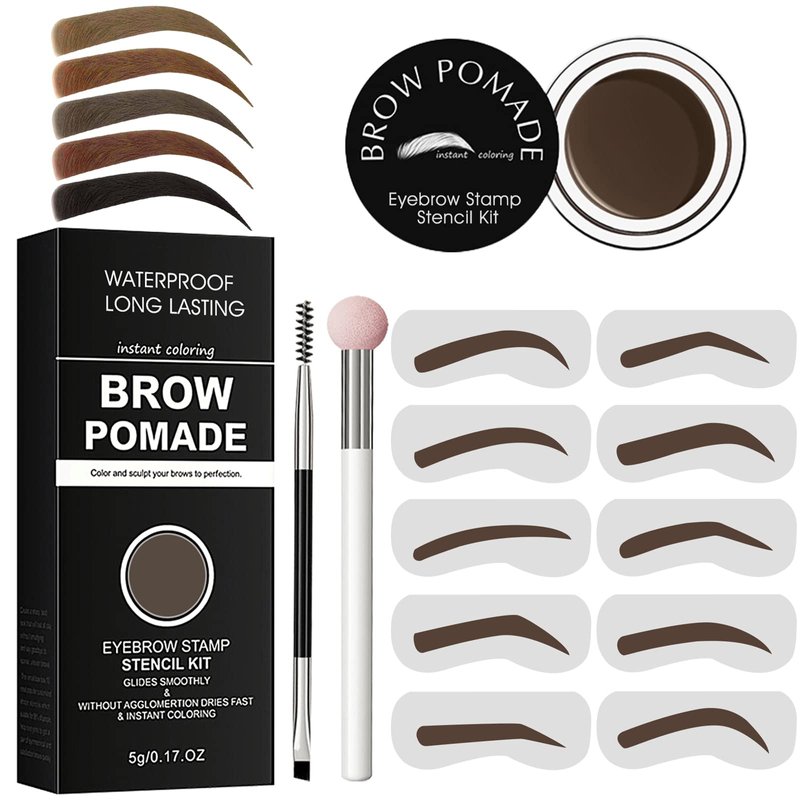- đ„ăEyebrow Stamp Stencil Kită- LOKFAR eyebrow stamp stencil kit includes 10 different styles eyebrow stencils, 1 waterproof eyebrow pomade, 1 sponge applicator, 1 dual-ended precision brush. It only takes a few seconds to create bushy and natural eyebrows, perfect for beginners and professionals.