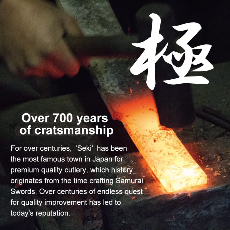 - [ Premium Quality ] Each carefully hande made in the town 'Seki' of Japan, the most famoust town in Japan for craftsmanship of cutlery with over 700 years of history, especially known for crafting premium Samurai sword. Over centuries of endless quest for quality improvement has led to today's reputation.