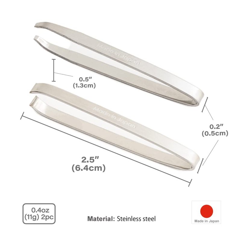 Eyebrow Tweezers [ Made in Japan ] 2 Pieces Set, Professional Hande Made Sharp Tweezers for Men and Women (SK-2)