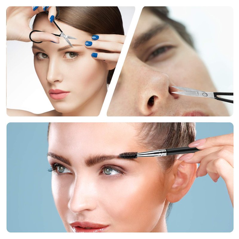 You can get 6 PCS useful eyebrow grooming tools in 1 SET, including 4 x different eyebrow precision tweezers, 1 x eyebrow scissor and 1 x eyebrow brush. 1 kit to meet all your eyebrow shaping routine.