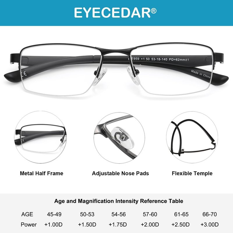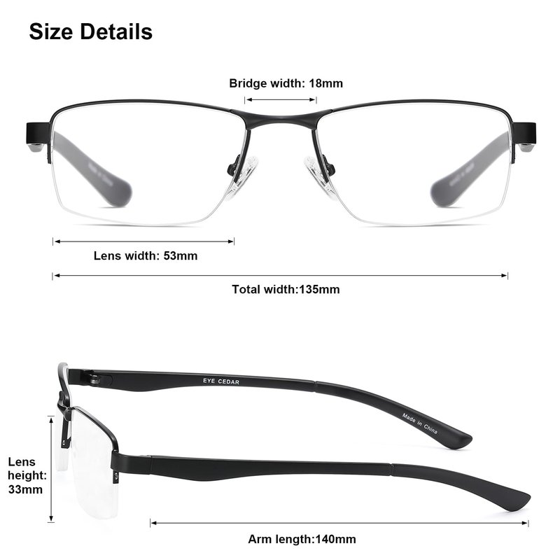 From EYECEDAR brand reading glasses We are committed to designing and producing quality reading glasses, hope to provide a good reading experience. Product DetailsThe frame is made of stainless steel material, lightweight and durable. Classic frame style has a good wearing effect. Stainless steel welded structure, wear and corrosion resistance strong and durable.Aspherical wear-resistant lens use of high quality materials, to protect the eyes in reading will not be discomfort.Memory material long temple, good flexibility and comfortable to wear, help glasses adapt to face shape. Excellent production quality and higher cost performance, each pair glasses carefully selected to Ensure that consumers get satisfactory products. Worry-Free Warranty Any quality problem when purchasing our products, you will get free compensation for replacement in the fastest time.We believe in our products. That's why we back them all with an 2-years warranty and provide friendly,easy-to-reach support.