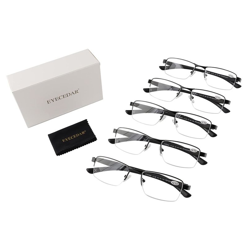 EYECEDAR 5-Pack Reading Glasses for Men and Women Metal Half Frame Eyeglasses Readers 2.50