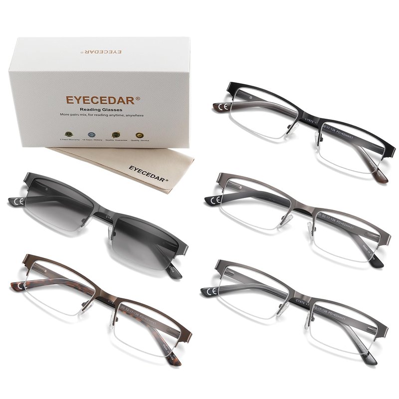 - METAL DURABLE FRAME: EYECEDAR brand readers for men is manufactured in stainless steel, for lightweight strong and long-lasting durability, metal spring hinges can be opened and closed thousands of times freely and are not easy to break, spring hinges and adjustable nose pads help to help the glasses adapt to the shape of the face; strong metal coating will not come off, environmentally friendly plating ensures that the metal temples will not corrode the skin