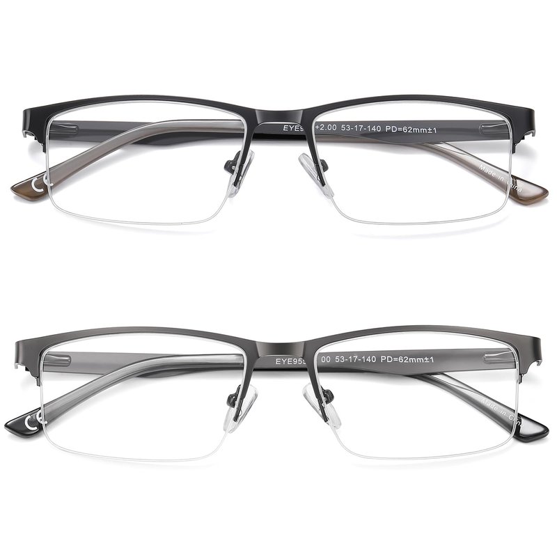 - CLASSIC STYLE: Metal half-rim reading glasses for men are elegant and slim with texture; classic rectangular style is exquisite and tasteful; frame width 53mm, height 33mm, nose bridge 17mm, temples length 140mm, total width 130mm,medium size fits most face shapes and wears well