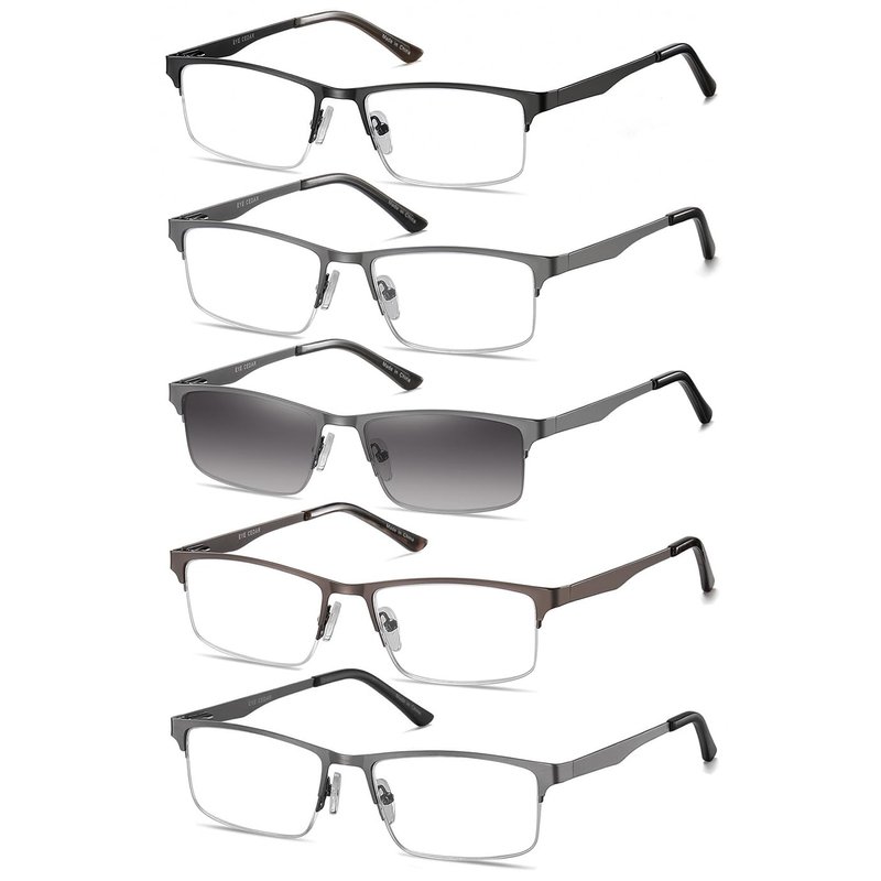 EYECEDAR 5-Pack Reading Glasses for Men Rectangular Metal Half-Frame Spring Hinges with Sun Readers Glasses Mens Readers 2.0