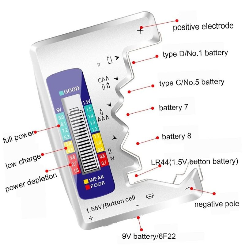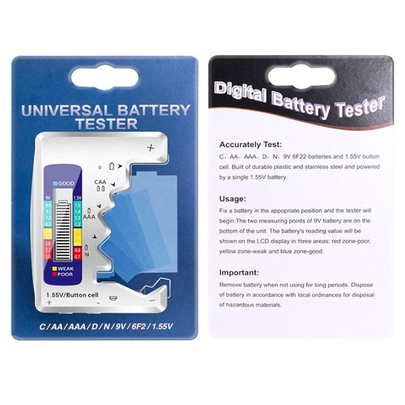 - Wide Application: Battery Tester universal used to test different type of household standard batteries ( AA/ AAA/ C/ D/ 1.5V/ 9V/1.5V button cell or carbon, zinc, alkaline) not for rechargeable battery.